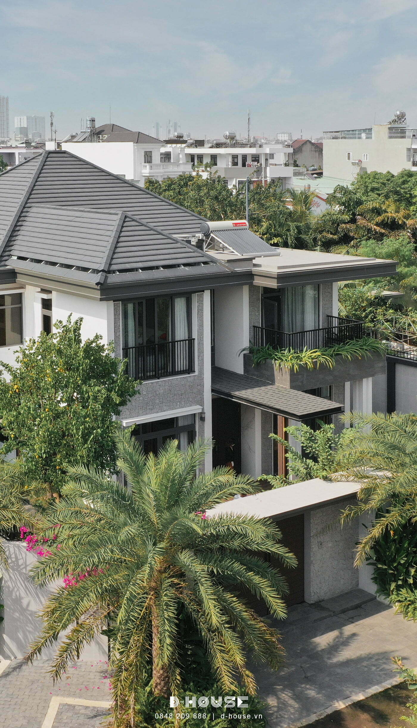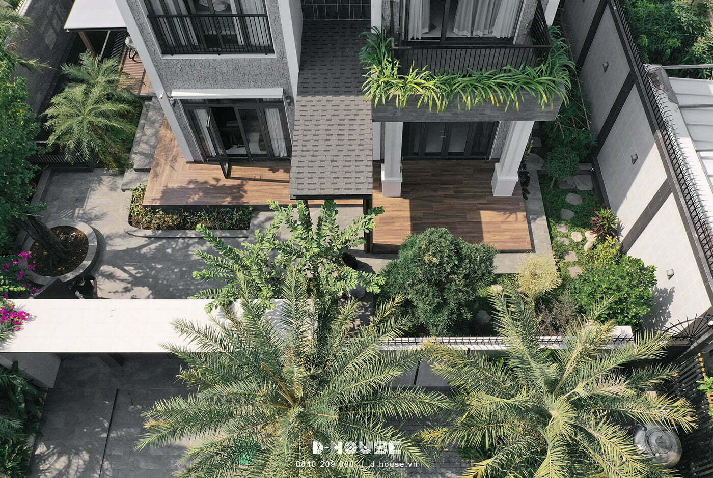 Dự án biệt thự vườn với thiết kế đơn giản, hiện đại. Sử dụng tone màu chủ đạo trắng, xám, điểm nhấn là các diện gỗ ốp tường và trần tạo cảm giác bề thế, vững chãi.