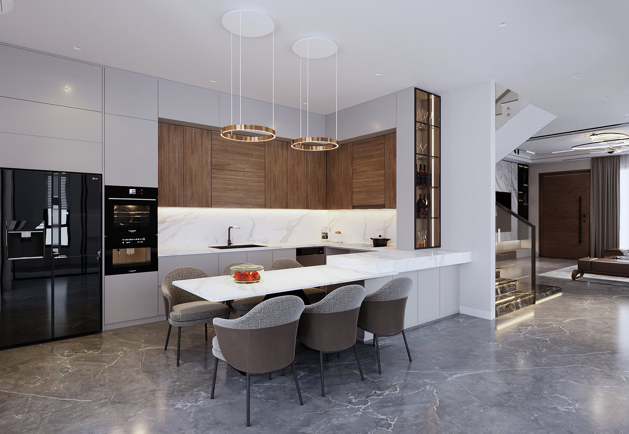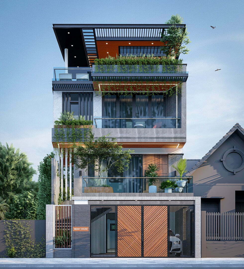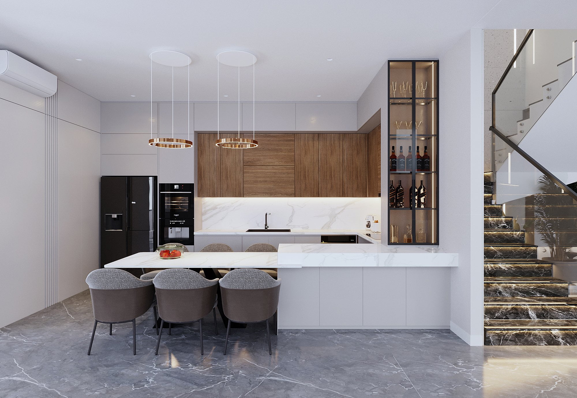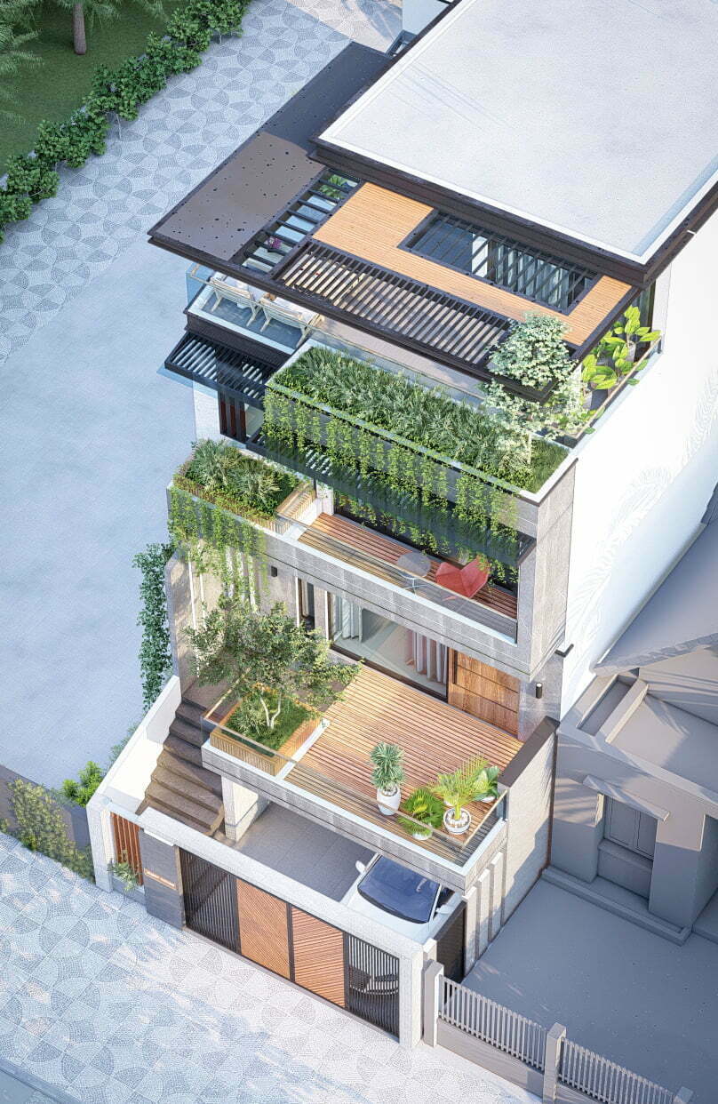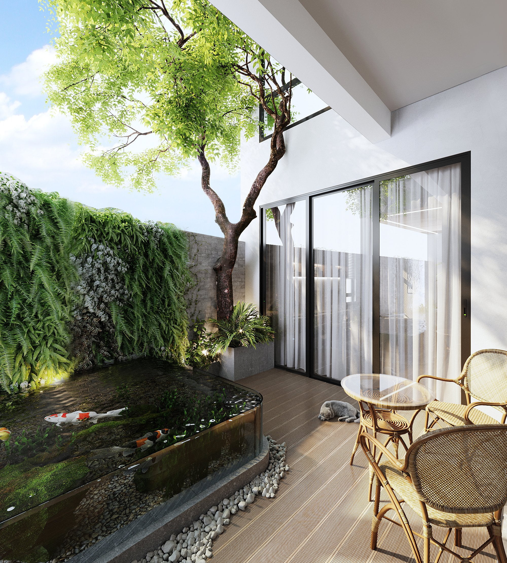 - Tầng 2: Phòng khách, ăn, bếp, 1 phòng ngủ, tiểu cảnh