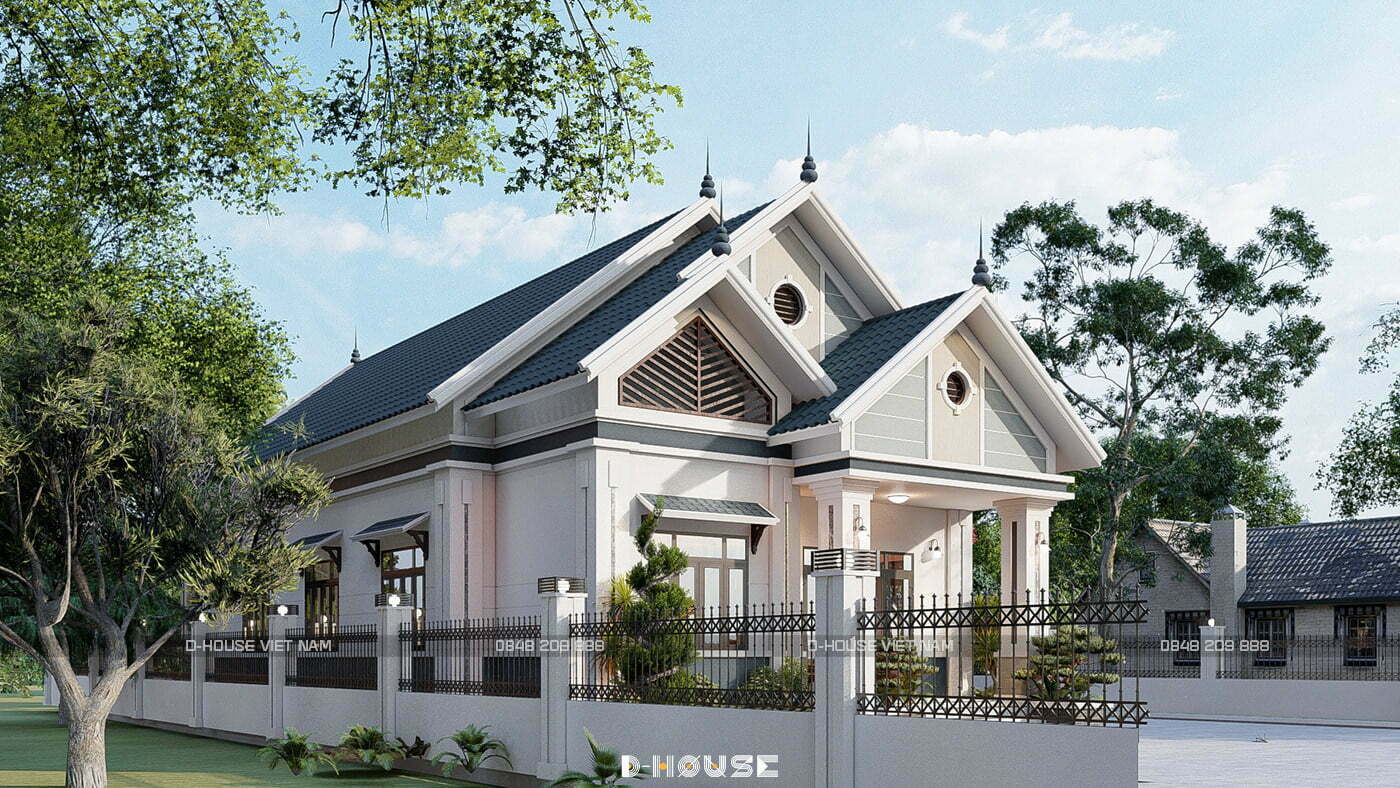 Dự án xây dựng trên khuôn đất quê rộng rãi, thoáng mát. Với thiết kế mái Thái, dù chỉ làm một tầng nhưng ngôi nhà vẫn rất cao và bề thế.